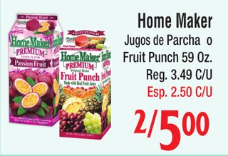 Home Maker Jugos de Parcha o Fruit Punch 59 Oz.