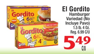 El Gordito Hamburger Variedad ( No Incluye Pavo ) 1.5 lb. 4 oz.