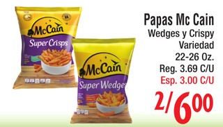 Papas Mc Cain Wedges y Crispy Variedad 22-26 oz.