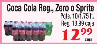 Coca cola reg., zero o sprite pqte. 10/1.75 lt.