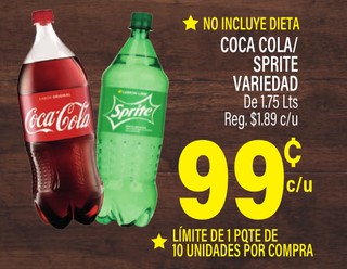 COCA COLA/ SPRITE VARIEDAD De 1.75 Lts.