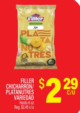 FILLER CHICHARRON / PLATANUTRES VARIEDAD Hasta 6 oz.