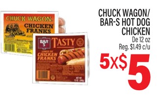 CHUCK WAGON/ BAR-S HOT DOG CHICKEN De 12 oz.