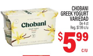 CHOBANI GREEK YOGURT VARIEDAD De 4 ct.