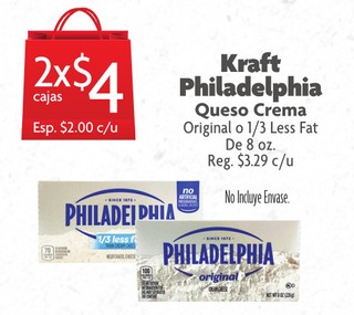 Kraft Philadelphia Queso Crema Original o 1/3 Less Fat De 8 oz.