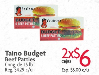 Taino Budget Beef Patties Cong. de 1.5 lb.