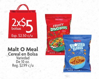 Malt o meal cereal en bolsa variedad de 10 oz.
