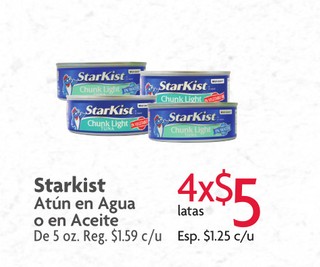 Starkist atun en agua o en aceite de 5 oz.