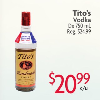 Tito's Vodka De 750 ml.