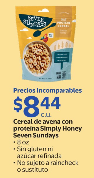 Cereal de avena con proteÃna Simply Honey 8 oz. Sin gluten ni azúcar refinada.