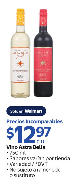 Vino Astra Bella 750 ml, Sabores varÃan por tienda, Variedad / *DVT No sujeto a raincheck o sustituto.