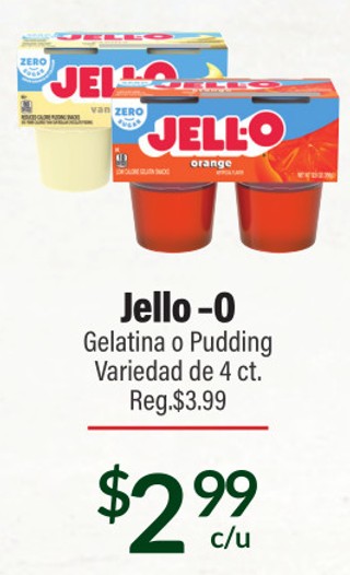Jello-0 Gelatina o Pudding Variedad de 4 ct.