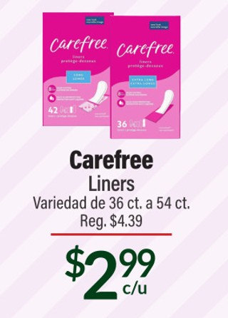 Carefree Liners Variedad de 36 ct. a 54 ct.