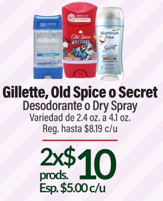 Gillette, Old Spice o Secret Desodorante o Dry Spray Variedad de 2.4 oz. a 4.1 oz.