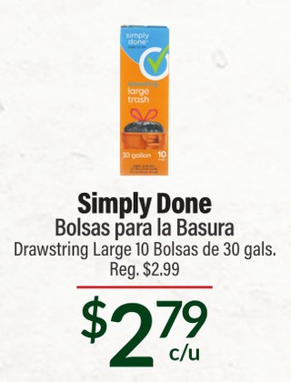 Simply Done Bolsas para la Basura Drawstring Large 10 Bolsas de 30 gals.