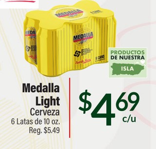 Medalla light cerveza 6 latas de 10 oz.