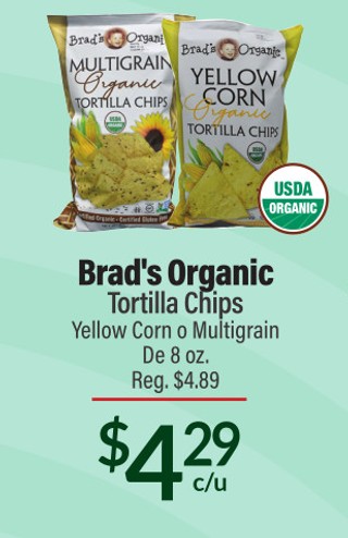 Brad's Organic Tortilla Chips Yellow Corn o Multigrain De 8 oz.