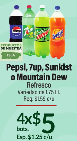 Pepsi, 7up, sunkist o mountain dew refresco variedad de 1.75 lt.
