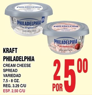 Kraft philadelphia cream cheese spread variedad 7.5 - 8 oz.