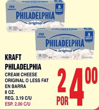 Kraft philadelphia cream cheese original o less fat en barria 8 oz.