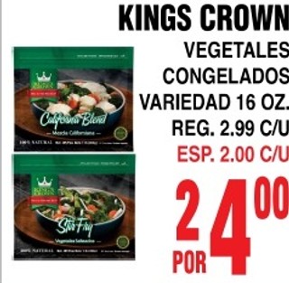 KINGS CROWN VEGETALES CONGELADOS VARIEDAD 16 OZ ESP. 2.00 C/U