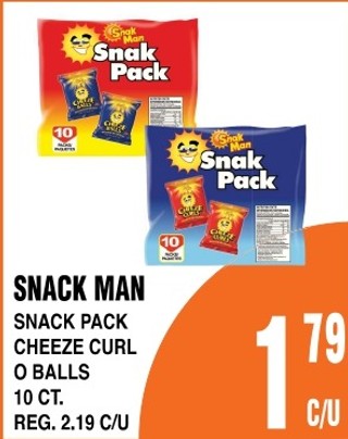 Snack man snack pack cheeze curl o balls 10 ct.