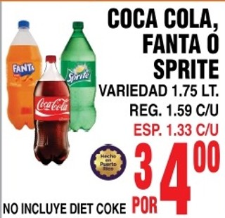 Coca cola, fanta o sprite variedad 1.75 lt.