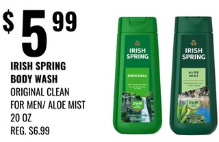 IRISH SPRING BODY WASH ORIGINAL CLEAN FOR MEN/ ALOE MIST 20 OZ.