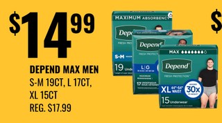 DEPEND MAX MEN S-M 19CT, L 17CT, XL 15CT 1.