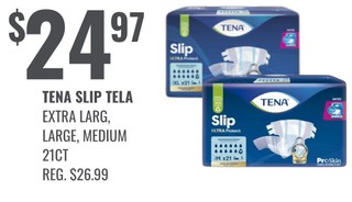 TENA SLIP TELA EXTRA LARG, LARGE, MEDIUM 21 CT