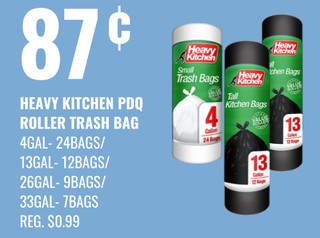 Heavy kitchen pdq roller trash bag 4gal-24bags/ 13gal- 12bags/ 26gal-9bags/ 33gal-7bags