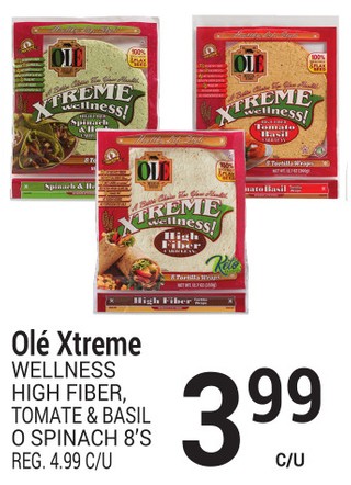 Ole xtreme wellness high fiber, tomate & brazil o spinach 8's