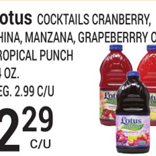 Lotus COCKTAILS CRANBERRY, CHINA, MANZANA, GRAPEBERRRY O TROPICAL PUNCH 64 OZ.