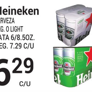 Heineken CERVEZA REG. O LIGHT LATA 6/8.5OZ.