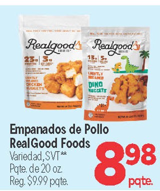 Empanados de pollo realgood foods variedad, svt** pqte. de 20 oz.