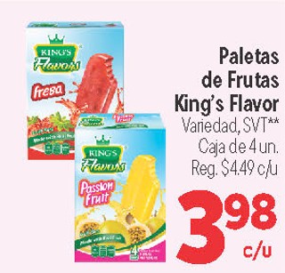 Paletas de Frutas King's Flavor Variedad, SVT** Caja de 4 un.