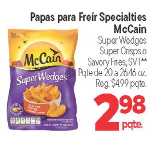 Papas para FreÃr Specialties McCain Super Wedges Super Crisps o Savory Fries, SVT** Pqte de 20 a 26.46 oz.