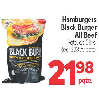 Hamburgers Black Burger All Beef Pqte. de 5 lbs.