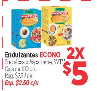 Endulzantes ECONO Sucralosa o Aspartame, Caja de 100 un.