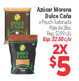 Azucar morena dulce caña o pouch turbinada pqte. de 2lbs.