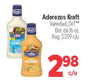 Aderezos Kraft Variedad, SVT** Bot. de 16 oz.