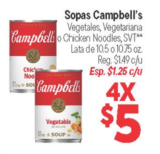 Sopas Campbell's Vegetales, Vegetariana o Chicken Noodles, SVT** Lata de 10.5 o 10.75 oz.