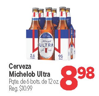 Cerveza Michelob ultra pqte. de 6 bots. de 12 oz.