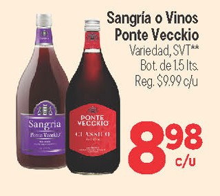 Sangria o vinos ponte vecckio variedad, SVT* bot. de 1.5 lts.