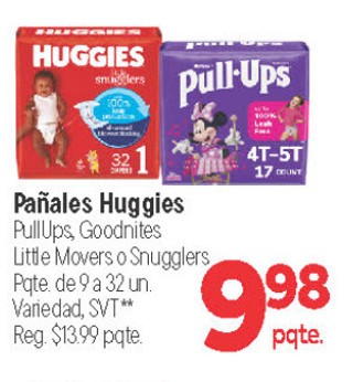 Pañales Huggies Pull Ups, Goodnites Little Movers o Snugglers Pqte. de 9 a 32 un. Variedad, SVT**