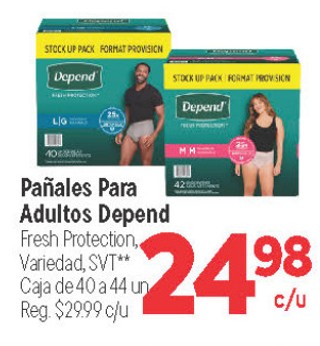 Pañales Para Adultos Depend Fresh Protection, Variedad, SVT** Caja de 40 a 44 un