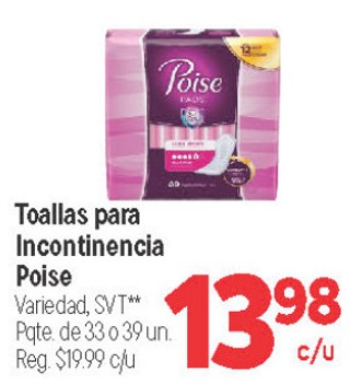 Toallas para Incontinencia Poise Variedad, SVT** Pqte. de 33 0 39 un.
