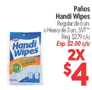 Paños Handi Wipes Regular de 6 un. o Heavu de 3 un., SVT**