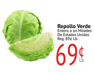 Repollo Verde Entero o en Mitades De Estados Unidos