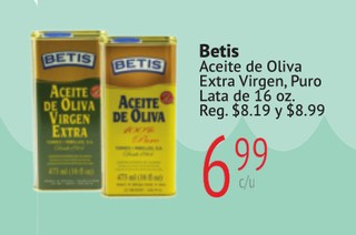 Betis Aceite de Oliva Extra Virgen, Puro Lata de 16 oz.